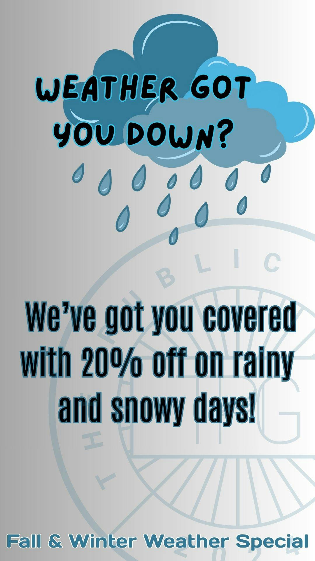 Home / Specials / 20% OFF ENTIRE MENU – SNOW DAY SPECIAL